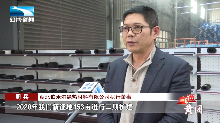 湖北伯乐尔绝热材料有限公司执行董事 周兵:“2020年我们新征地153亩进行二期扩建 ,总投资3.1亿元,计划新增10条生产线,我们在此过程中边建边生产,目前四条生产线已投入使用,产值达到了3个亿,预计全面投产后产值将达到10亿元左右。”