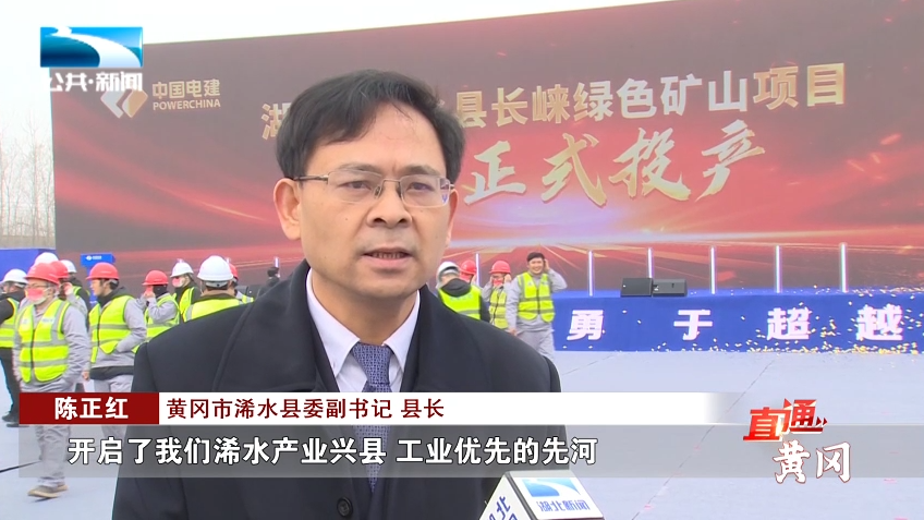 黄冈市浠水县委副书记、县长 陈正红:“中电建浠水长崃绿色矿山项目,开启了我们浠水产业兴县、工业优先的先河,我们抽调国土、林业、环保等相关部门,组建工作专班,围绕码头的审批、土地的报批、征地的补偿,实行点到点订单式保姆式服务。”