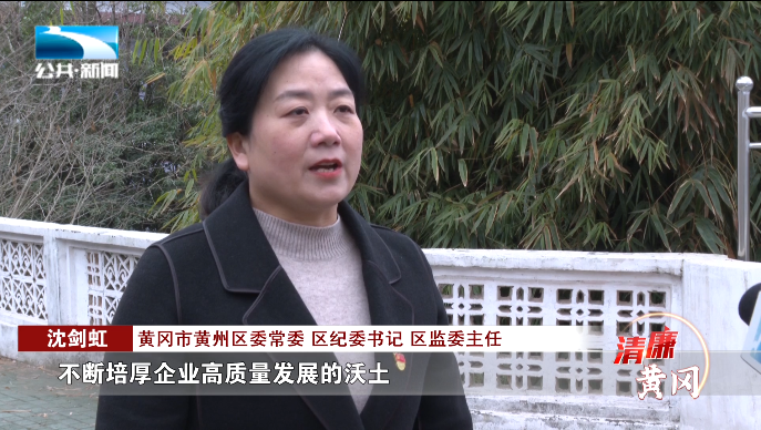 黄冈市黄州区委常委 区纪委书记、区监委主任 沈剑虹:“把监督的探头直接架到市场主体的最前沿,积极为营商环境破阻清障,推动干部作风持续向好,治理效能持续提升。不断培厚企业高质量发展的沃土,受到市场主体的普遍赞誉。”