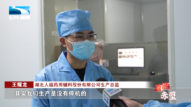 湖北人福药用辅料股份有限公司生产总监 王耀龙:“整个春节期间,其实我们生产是没有停机的,大年三十、初一、初二,我们整个生产留岗110人来保证订单,正月初三我们全员复工,一起220人来保证订单的生产,24小时不停机地运行,目前我们订单已经排到了三月下旬,每天还不断地有新订单进来。”