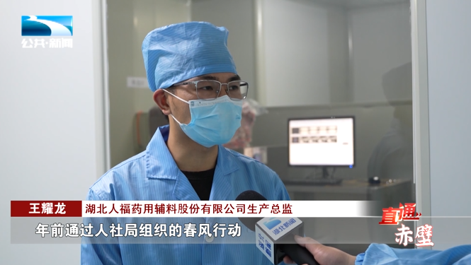 湖北人福药用辅料股份有限公司生产总监 王耀龙:“年前通过人社局组织的春风行动,招聘补充了一部分人员,为我们春节期间的人员留岗,提供了很大的帮助,正月初九的时候,我们又参加了人社局组织的春风行动,为我们的增线,包括我们新厂房人手的补充,提供了很大的支撑。”
