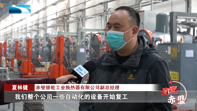 赤壁银轮工业换热器有限公司副总经理 夏林健:“正月初二,我们整个公司一些自动化的设备开始复工,到正月初五,我们整个公司的各个部门全面复工,这样确保一月份,我们整体的销售额完成了2600多万,跟去年同期相比翻了三番以上,我们现在排单已经排到六月份以后了。”