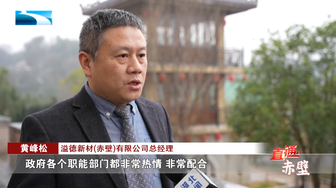 溢德新材(赤壁)有限公司总经理 黄峰松:“交流洽谈整个过程当中,政府各个职能部门都非常热情、非常配合,反复跟我们沟通,这点我们非常感动,营商环境各方面领导都非常重视,所以我们也非常重视,也愿意来这个地方落户。”