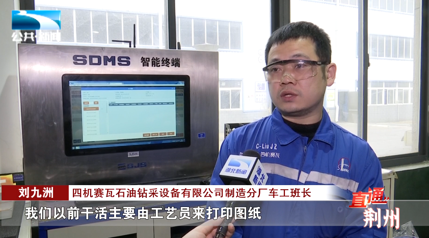 四机赛瓦石油钻采设备有限公司制造分厂车工班长 刘九洲:“我们以前干活主要由工艺员来打印图纸,操作工要对图纸进行核对,我们还要进行编程,现在我们通过智能终端,可以实现操作工不用编程,通过远程智能终端将程序传送到机床,我们的工作效率提高了30%到40%。”