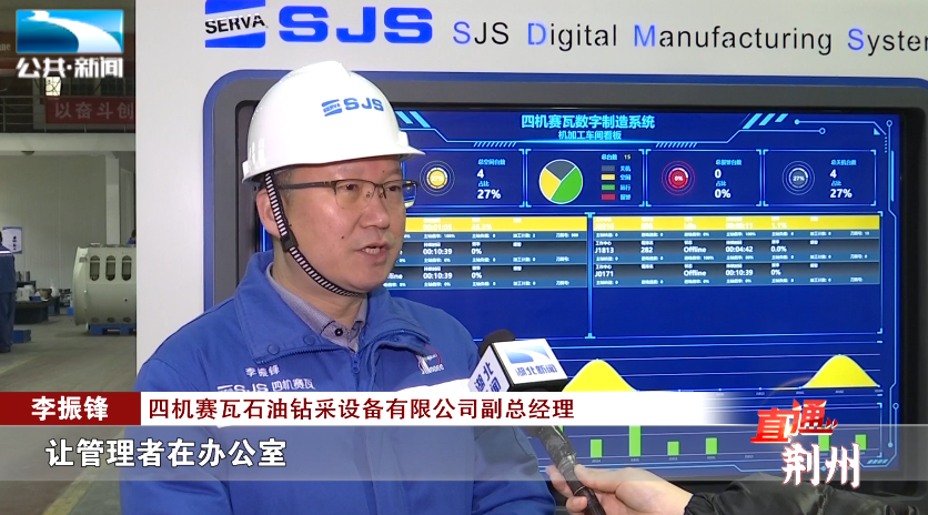 四机赛瓦石油钻采设备有限公司副总经理 李振锋:“四机赛瓦数字化制造系统,可以实现我们公司所有设备的联网,可以采集到机床的转数,能够打开整个管理过程中的黑匣子,让管理者在办公室,甚至在手机终端上,都可以知道车间发生了什么。”