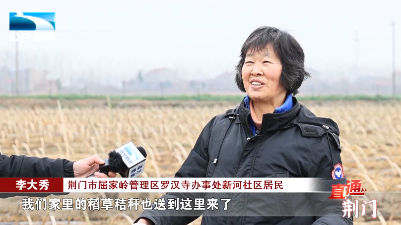 荆门市屈家岭管理区罗汉寺办事处新河社区居民 李大秀:“我们家里的稻草秸秆也送到这里来了,人家的也送到这来了,对他们也有利,对我们也有利。”