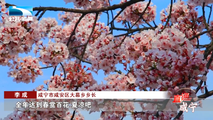 咸宁市咸安区大幕乡乡长 李成:“达到全域全年游的目的,全域是整个大幕乡每个村庄有特色,全年达到春赏百花、夏凉吧,春天可以看万亩野樱花、百米油菜观光走廊,夏天可以达到避暑的目的。还有可以看到秋尝果瓜、冬雪花的效果。”