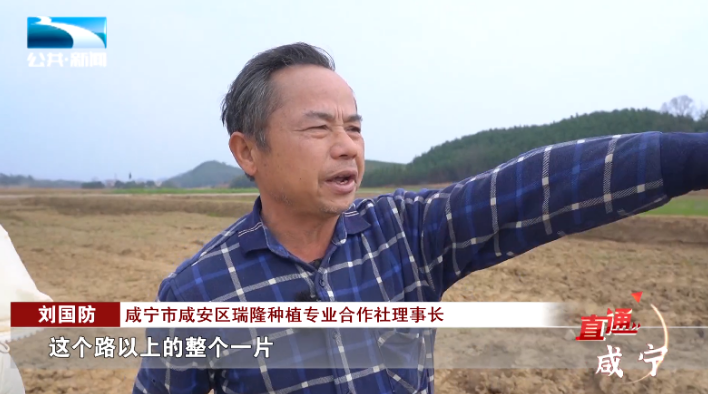 咸宁市咸安区瑞隆种植专业合作社理事长 刘国防:“从这个水沟,这个路以上的整个一片,和上面那两片都是我的。把那些没有路的田、没有水的田,还有栽树的田都整改以后,今年就新增了100亩。”