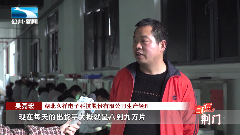 湖北久祥电子科技股份有限公司生产经理 吴亮宏:“现在每天的出货量大概就是八到九万片,现在总的产值大概是40万到50万人民币,比疫情之前差不多翻了一番。”
