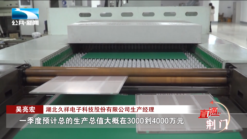 湖北久祥电子科技股份有限公司生产经理 吴亮宏:“这个月估计争取突破1000万人民币,一季度预计总的生产总值大概在3000到4000万元,全年的产值争取在去年的基础上翻一番,达到1.5—1.6个亿人民币的总收入。”