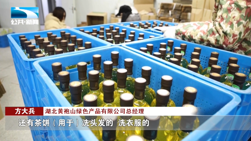 湖北黄袍山绿色产品有限公司总经理 方大兵:“过去农村用茶油来护肤,还有茶饼用于洗头发的、洗衣服的。过去都是一些传统的老配方,现在把它挖掘出来。”