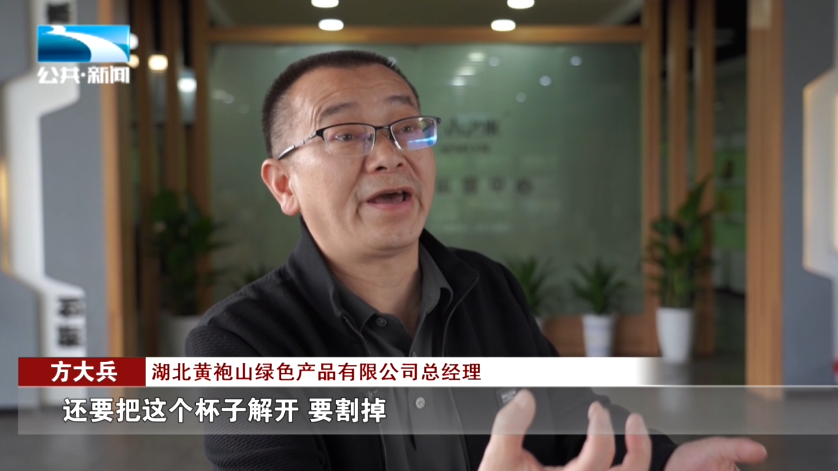 湖北黄袍山绿色产品有限公司总经理 方大兵:“过去营养杯的育苗技术,这个营养杯上山栽种的时候,还要把这个杯子解开,要割掉,再栽在土里面。我们这个无纺布是可以降解的,这个苗子的成活率非常高,有99%以上。”