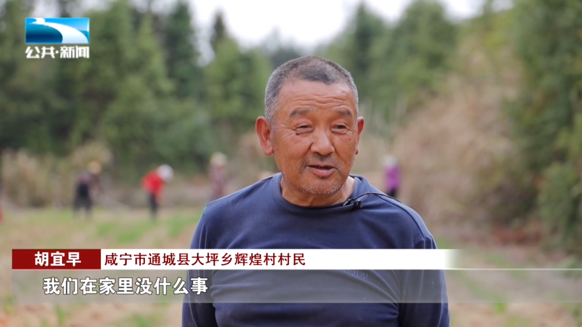 咸宁市通城县大坪乡辉煌村村民 胡宜早:“我们在家里没什么事,来帮忙打药、摘黄花,搞得到百把多块钱一天。”