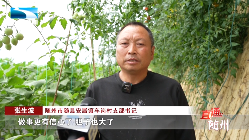 随州市随县安居镇车岗村支部书记 张生波:“做事更有信心了、胆子也大了,里面全部都种的青茄和圣女果,带动我们车岗村36户致富。”