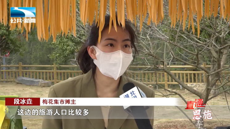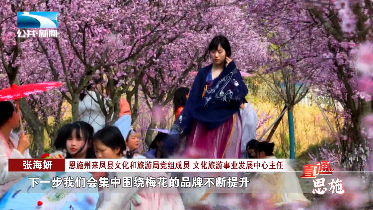 恩施州来凤县文化和旅游局党组成员、文化旅游事业发展中心主任 张海妍:“下一步,我们会集中围绕梅花的品牌不断提升,做好梅花民宿、梅花酒店等等这样一些梅花的品牌,做成我们来凤县,恩施州,甚至是湖北省的一个花品牌。”