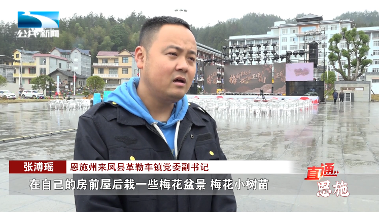 恩施州来凤县革勒车镇党委副书记 张溥瑶:“号召当地的老百姓,在自己的房前屋后栽一些梅花盆景、梅花小树苗,通过这样一种方式逐步地把我们小镇的梅花元素丰富起来,把梅花的底蕴挖掘出来。”