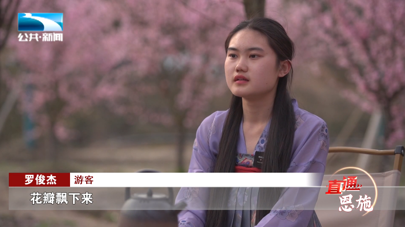 游客 罗俊杰:“大风吹起来的时候花瓣飘下来,自己穿着汉服站在那里拍照,特别的漂亮。”