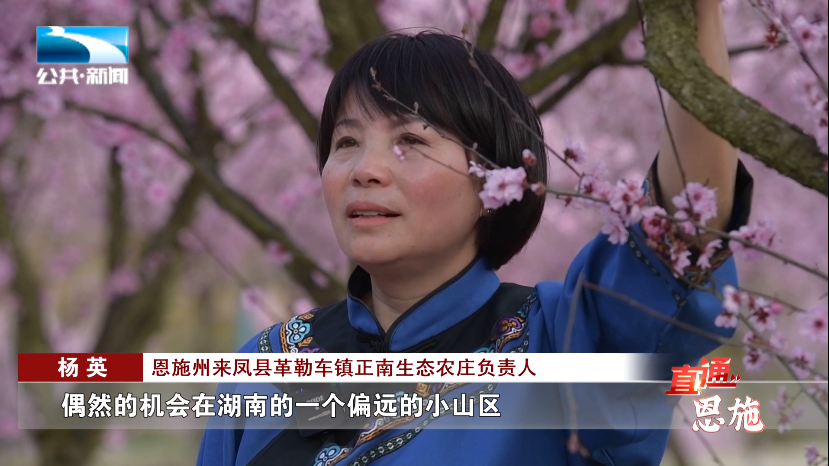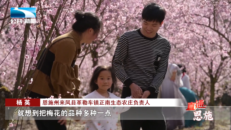 恩施州来凤县革勒车镇正南生态农庄负责人 杨英:“看到梅花凋谢的时候,就想到自己的母亲又离开我的身边了,就想到把梅花的品种多种一点,延长花期的时间,就想跟妈妈多待一段时间。”