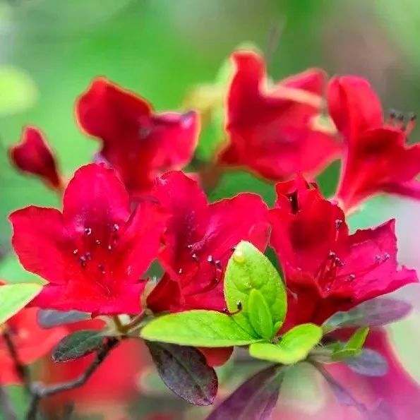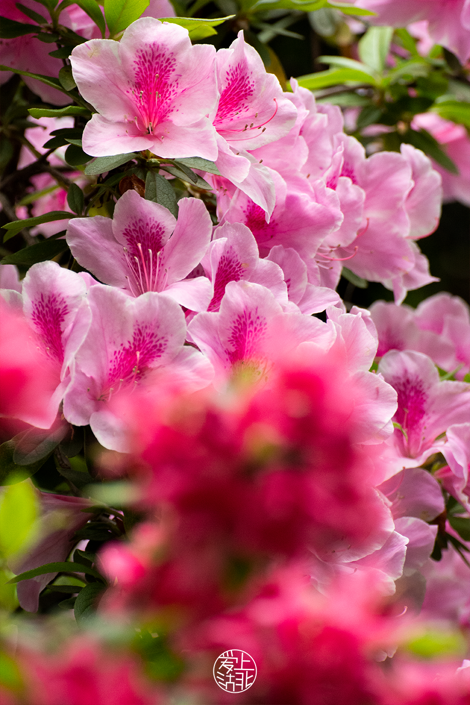 此外,还有樱花般粉嫩的“满山红”,深粉的“吐蕊玫瑰”,颜色如中国红的“国旗”……千姿百态的杜鹃汇聚一堂,描画出万紫千红才是春。