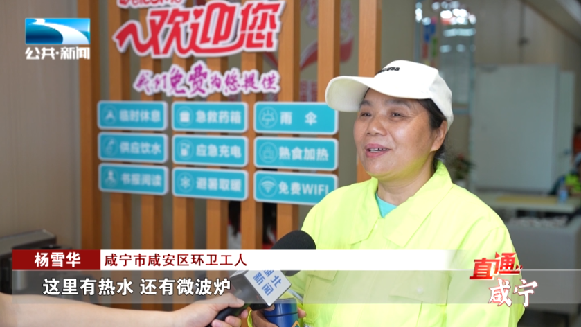 咸宁市咸安区环卫工人 杨雪华:“这里有热水,还有微波炉。我们这些保洁员有时候中午不能回去,远一点的,可以在这边享受一下,感到了爱心,感到了暖心。”