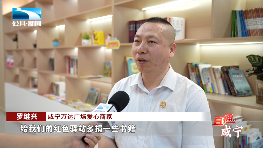 咸宁万达广场爱心商家 罗继兴:“帮我们商家解决了很多的后顾之忧,回去我带领我们的团队,呼吁我们周围的商家,给我们的红色驿站多捐一些书籍,(做一些)力所能及的事情,我们把这个驿站做得更好。”