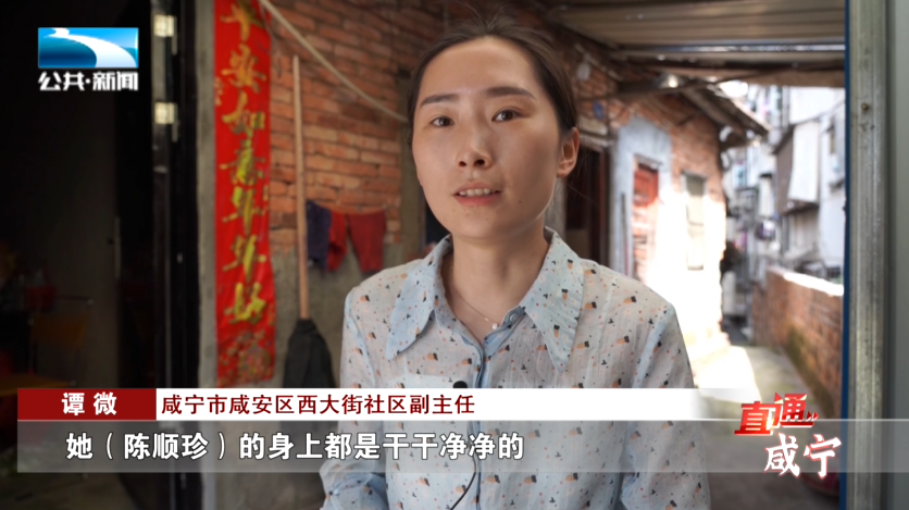 咸宁市咸安区西大街社区副主任 谭微:“她(陈顺珍)的身上都是干干净净的,没有褥疮。在她(王红咏)的悉心照顾下,精神也越来越好,身体状况也越来越好。”