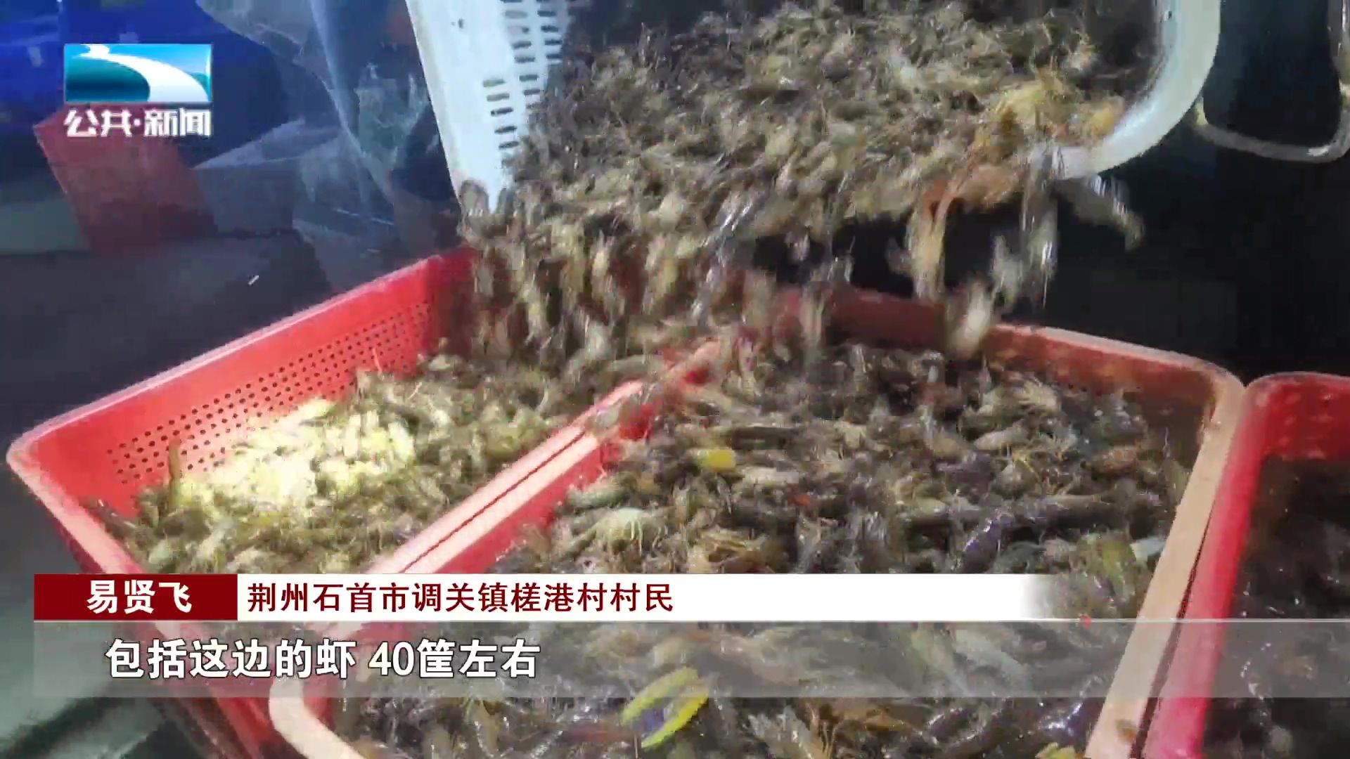 荆州石首市调关镇槎港村村民 易贤飞:“这边起上来的货大概有90多筐,包括这边的虾40筐左右,3000多斤可以卖两万多块钱,早期三月份,这个虾一斤卖到40块钱左右。”