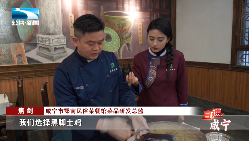 咸宁市鄂南民俗菜餐馆菜品研发总监 焦剑:“我们选择黑脚土鸡,六个月的比较嫩,做这个鸡的口感比较顺滑。”
