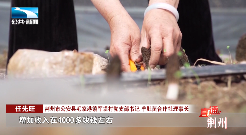 荆州市公安县毛家港镇军堤村村民 郭恒平:“羊肚菌给我们带来了一笔额外的收入,我们在这里采摘管理,可以做个把月的事,我们还可以额外增加四五千元的收入。”