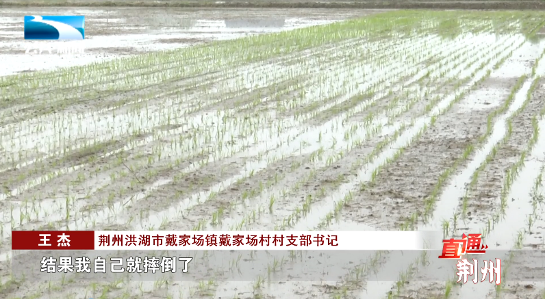 荆州洪湖市戴家场镇戴家场村村支部书记 王杰:“在夏天的时候,在农忙的时候,在前面的这一片稻田里面,我想到那里去拍一个镜头,因为那个三脚架在田里面不稳,三脚架倒了,我就去抢那个手机,结果我自己就摔倒了,躺到那个稻田里面去了,一身都是泥巴。”
