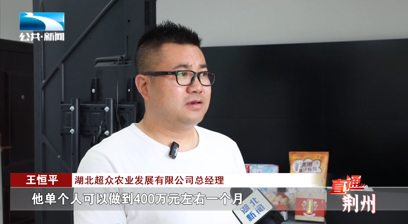 湖北超众农业发展有限公司总经理 王恒平:“他单个人可以做到400万元左右一个月,粉丝量,目前三个月就涨了15万,目前我们所有产品,都来自我们当地的农户和一些农业合作社。”