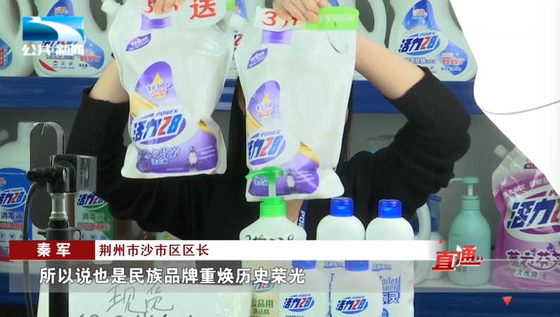 荆州市沙市区区长 秦军:“今天我也带来了‘活力28’,这个最新的产品,在全国的各大商超,还有通过线上都能够购买到,所以说也是民族品牌重焕历史荣光。”