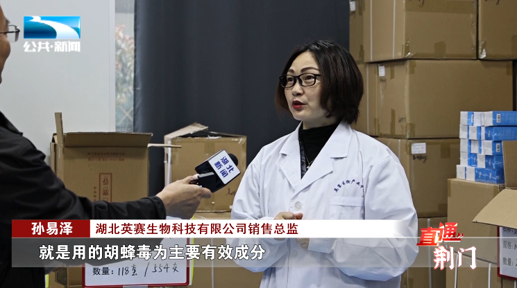 湖北英赛生物科技有限公司销售总监 孙易泽:“就是用的胡蜂毒为主要有效成分,然后配合一些名贵的中草药配伍在一起,其实它是一个千年的彝族配方。”