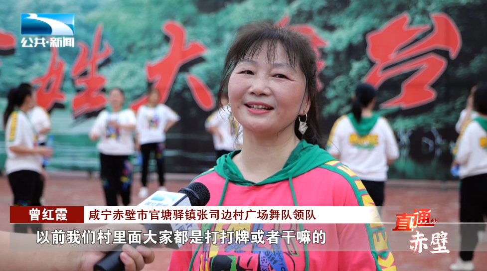 咸宁赤壁市官塘驿镇张司边村广场舞队领队 曾红霞:“以前我们村里面大家都是打打牌或者干嘛的,现在我们这个百姓大舞台建起以后,天天都能开开心心、健健康康。”
