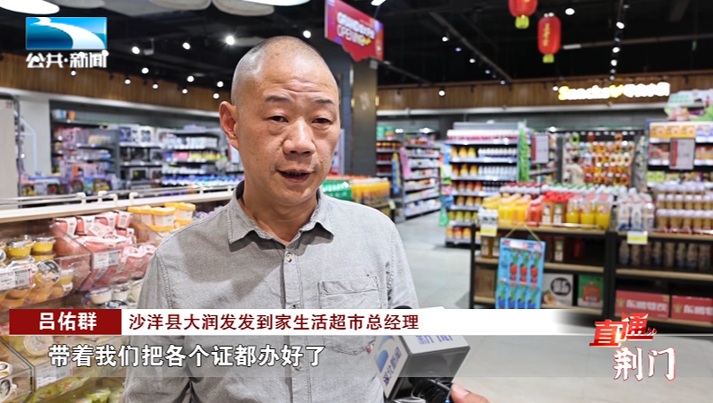 沙洋县大润发发到家生活超市总经理 吕佑群:“(我们)只打了一个电话,然后政府部门派人过来,带着我们把各个证都办好了,使我们也更加安心在这里发展。”