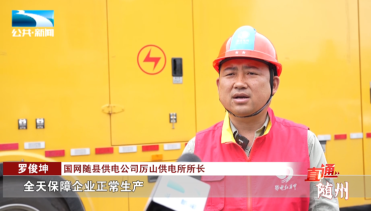 国网随县供电公司厉山供电所所长 罗俊坤:“通过整合施工力量,完善施工方案,将原本需要四五天的施工任务,压缩到一天完成,针对玩具厂紧急生产任务的情况,我们制定一企一策,主动安排2台400千伏的应急保障车,全天保障企业正常生产。”