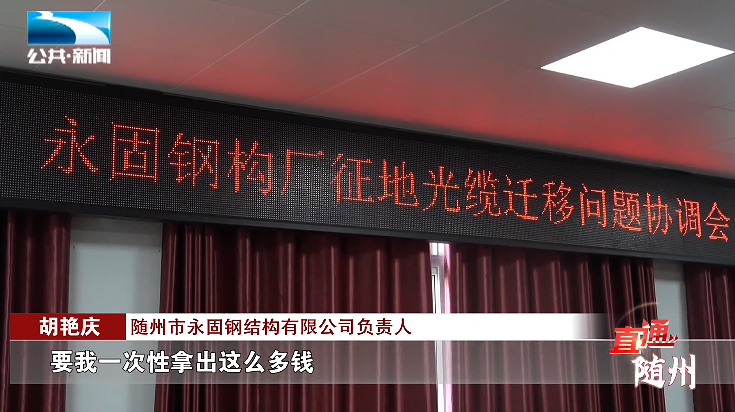 随州市永固钢结构有限公司负责人 胡艳庆:“作为光缆公司,你们提出来20多万的费用,要我一次性拿出这么多钱,肯定是非常困难。”