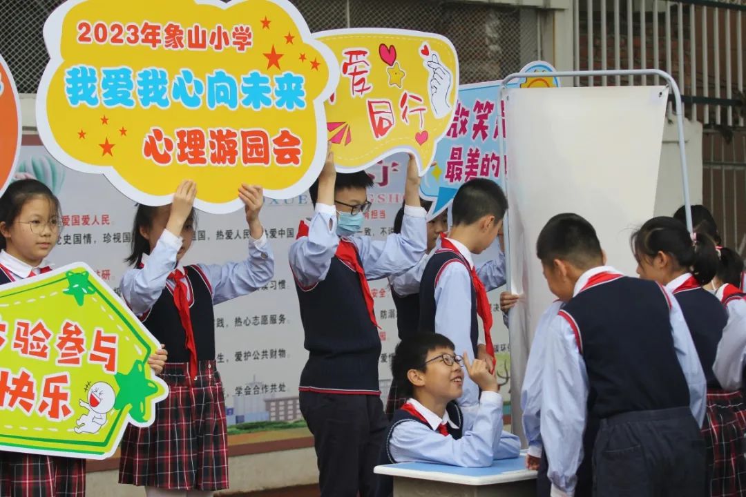 五月,承载着春天的希望,演绎着夏天的芬芳。为了每一朵花蕾的绽放,象山小学充分利用五月的国旗下讲话、心理健康课、班队会、宣传展板和心理游园活动等平台,以“我爱我 心向未来”为主题,开展心理健康教育月系列活动,引导广大师生树立珍惜生命、珍爱自己、尊重他人的意识,培育积极向上的阳光心态。