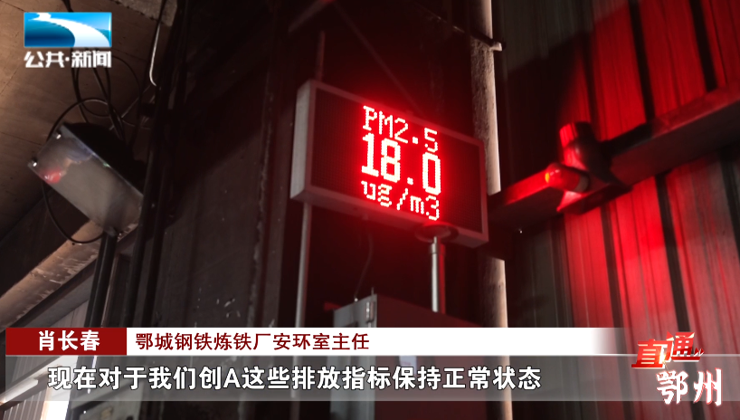 鄂城钢铁炼铁厂安环室主任 肖长春:“我们现在对于创A这些排放指标保持正常状态,跟环保设施的正常运行,我们一个都没有放松,我们现在基本上在双休日、节假日都安排了值班,保证我们环保设施正常运行。”