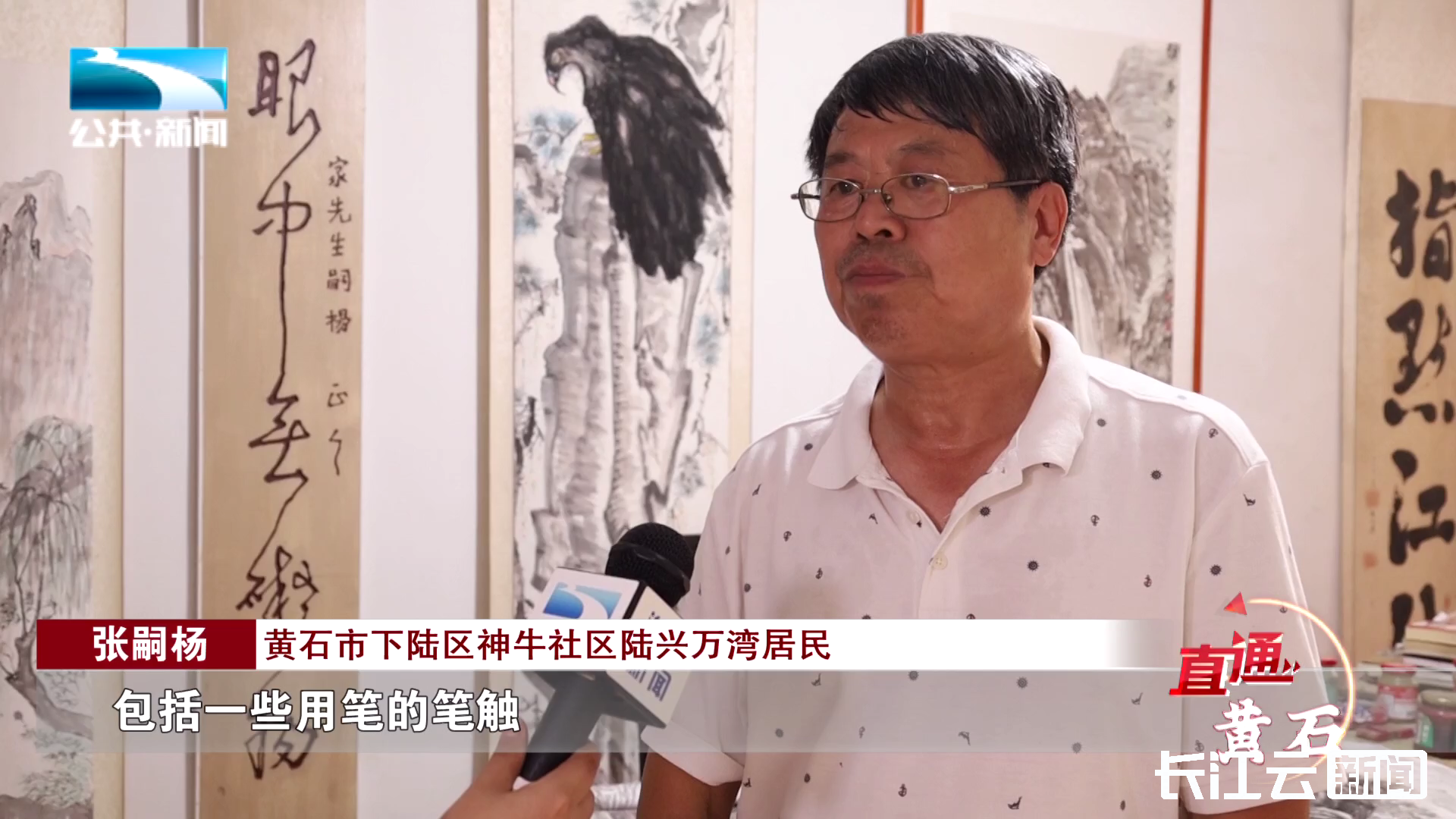 黄石市下陆区神牛社区陆兴万湾居民 张嗣杨:“学国画里面点、线、面、水墨关系,包括一些用笔的笔触,是一个相互交流,都有一个相互提高。”