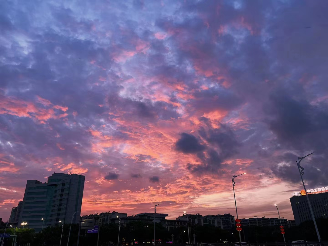 夏日的黄昏,夕阳西下,天边一缕缕余光给整座城市加上了一层温柔的滤镜。