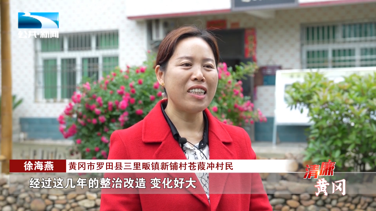 黄冈市罗田县三里畈镇新铺村苍葭冲村民 徐海燕:“经过这几年的整治改造变化好大,像我的小院种点花、栽点树,美化了环境,心情也好。”