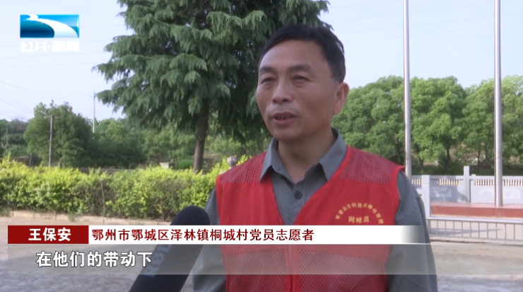 鄂州市鄂城区泽林镇桐城村党员志愿者 王保安:“在他们的带动下,村民都参与到其中来,湾里环境越来越好了。”