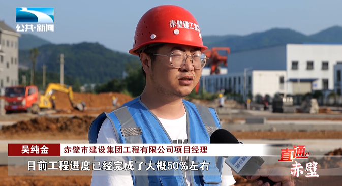 赤壁市建设集团工程有限公司项目经理 吴纯金:“目前工程进度已经完成了大概50%左右,预计在2023年七月底完工。”
