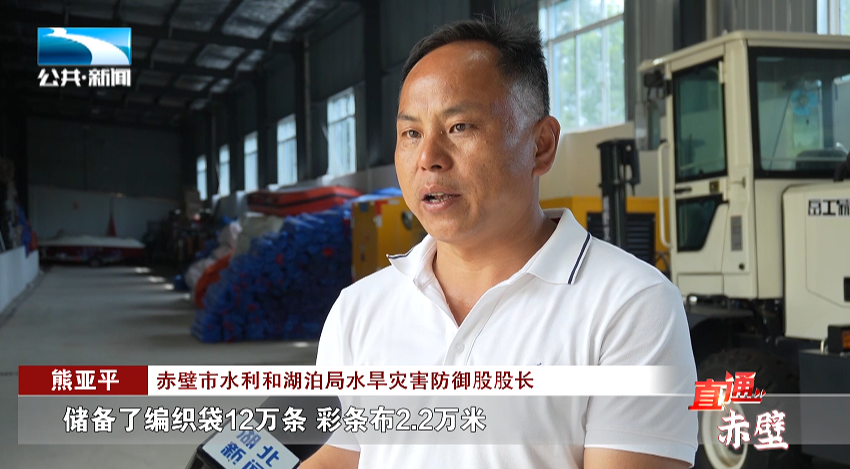 赤壁市水利和湖泊局水旱灾害防御股股长 熊亚平:“目前我们通过自储和社会代储的方式,储备了编织袋12万条、彩条布2.2万米、砂石料8000立方、木材248立方,以及救援类的救生衣、冲锋舟和应急排水设备、应急电源等等。”