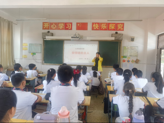 为学习宣传首届湖北省未成年人心理健康教育活动,进一步推进校园心理健康教育工作,提升心理健康教育水平,促进学生心理健康成长。由鄂州市委宣传部、市委文明办、团市委、市民政局主办,市未成年人心理健康辅导中心、市青少年事务服务中心、鄂城区教育局承办,鄂州市鄂城区泽林镇楼下小学协办的“阳光心行动健康向未来“心理健康教育活动于6月9日再次走进泽林镇楼下小学,心理健康教育咨询师陶美老师为五年级学生开展了一场“做情绪的主人”心理健康课。