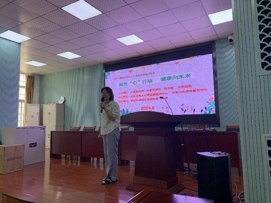 为了积极响应湖北省未成年人心理健康教育月的号召,为推进鄂州市未成年人理健康教育工作,6月14日,市委宣传部、市委文明办、团市委、市民政局联合鄂州市未成年人心理健康辅导中心、鄂州市未成年人事务服务中心来到鄂州市第三中学开展了“阳光‘心’行动,健康向未来”“呵护生命 向阳而生”的心理健康讲座。本次讲座由来自鄂州市未成年人心理健康辅导中心的国家二级心理咨询师廖春芳主讲,第三中学七年级(2)班、八年级(7)班的学生参加了此次讲座。