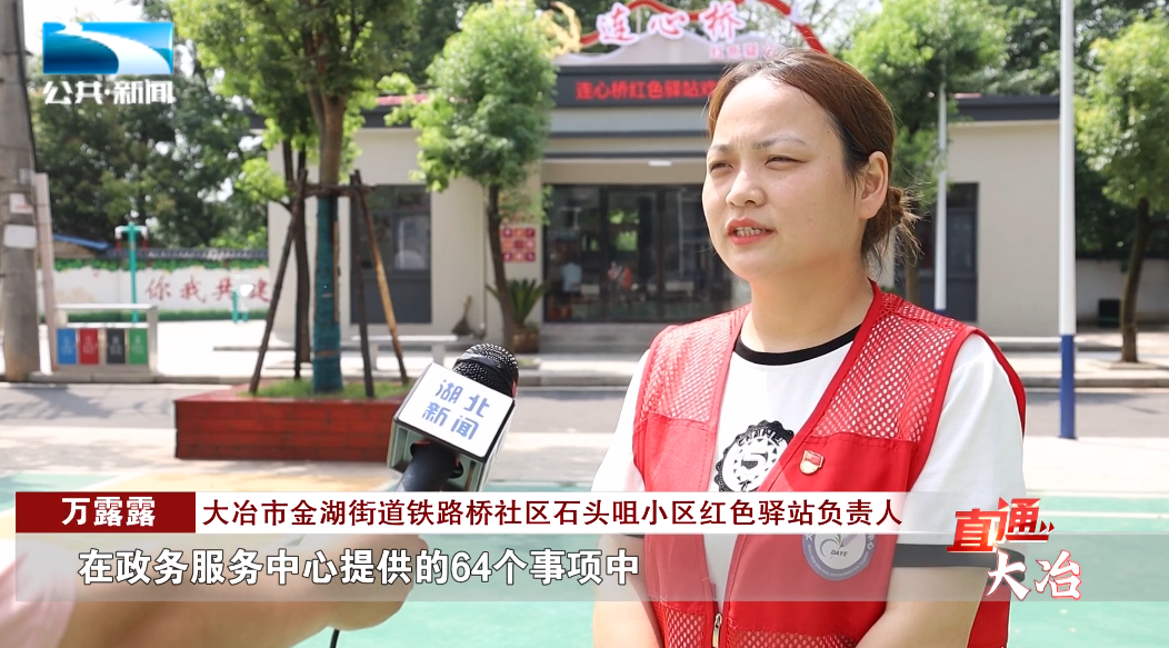 大冶市金湖街道铁路桥社区石头咀小区红色驿站负责人 万露露:“在政务服务中心提供的64个事项中,80%的居民选中了23个高频事项,现在每天都有十几位居民来咨询办理这些业务。”