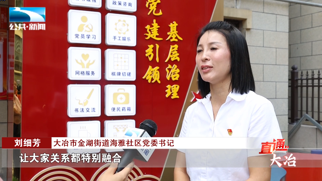 大冶市金湖街道海雅社区党委书记 刘细芳:“不光是居民的一个娱乐场地,还是居民协商议事的一个阵地,多方面地到这里来开展活动,让大家关系都特别融合。”