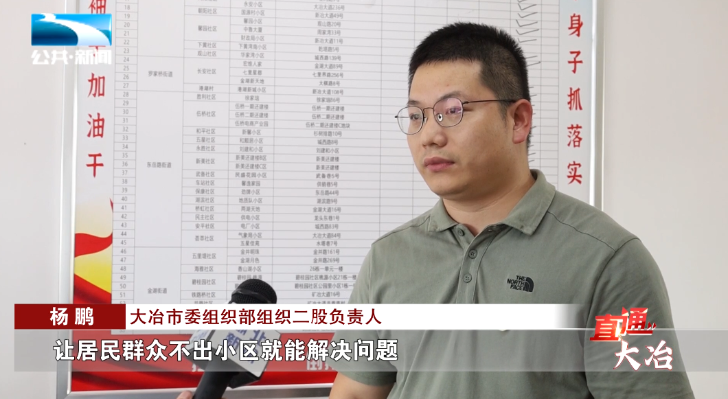 大冶市委组织部组织二股负责人 杨鹏:“让居民群众不出小区就能解决问题,另外一方面对接有阵地需求的部门单位,广泛参与驿站建设,将部门单位的政策、资金、服务下沉到小区,提供各具特色、各具主题的服务。”